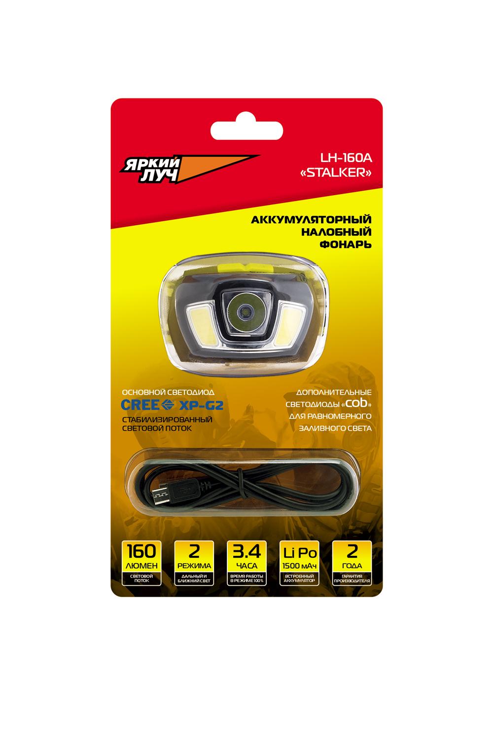 Фонарь налобный ЯРКИЙ ЛУЧ LH-160A "Stalker"
