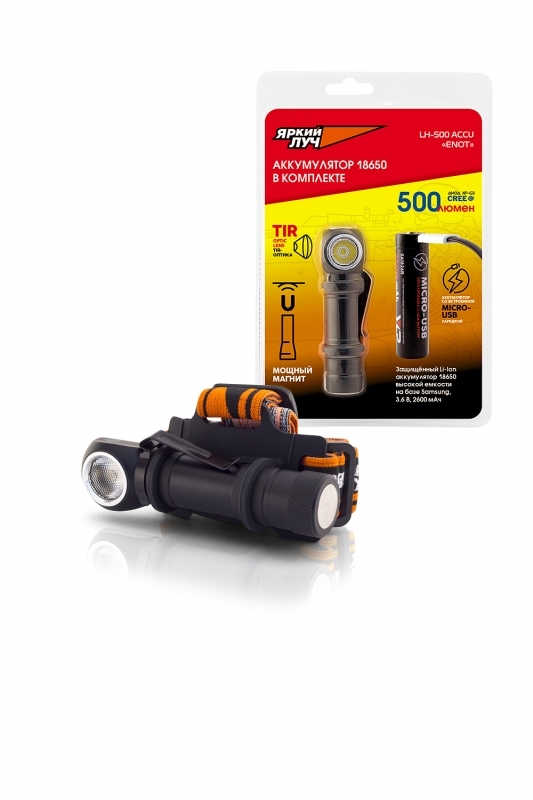 Фонарь налобный ЯРКИЙ ЛУЧ LH-500 ACCU "ENOT" с встр. ЗУ