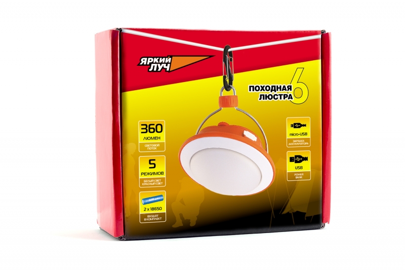 Фонарь кемпинговый ЯРКИЙ ЛУЧ CL-360A "Походная люстра 6" 360лм, 5 реж.