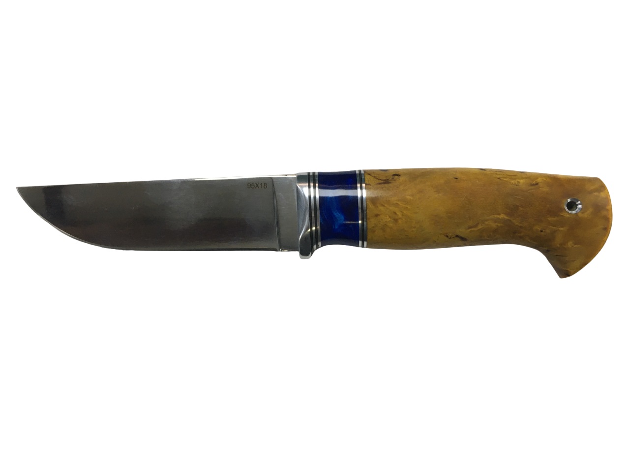 Нож Назарова Беркут 2 сталь 95х18 рукоять карельская береза янтарная акрил синий