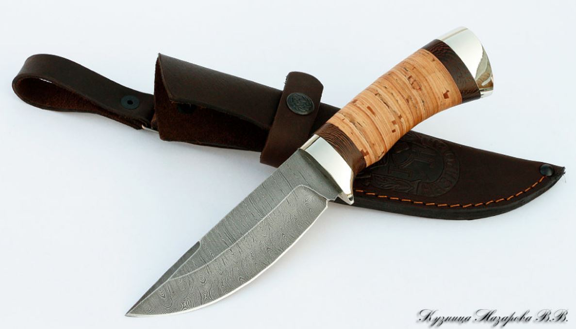 Нож Назарова Гепард сталь дамаск рук. мельхиор береста