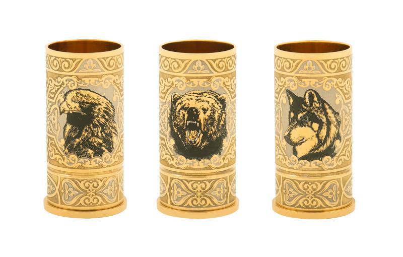 Набор ЗЗОСС водочный (гильза) на 3 персоны (Покрытие: золото, никель)