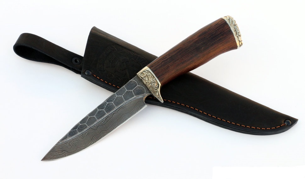 Нож Назарова Зубр дамаск камень, венге, мельхиор