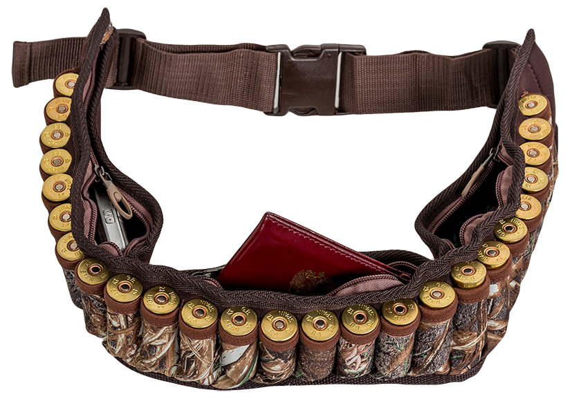Патронташ поясной под 25 патронов 12 калибра. Вас приятно удивит наличие на внутренней стороне патронташа 3 карманов на молниях, в которых удобно разместятся документы, гаджеты, ключи и различные аксессуары. Материал карманов надежно защитит их содержимое от влаги и грязи.