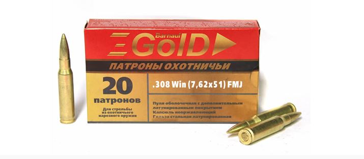 Патрон 7.62х51 (308Win) БПЗ ОБ (FMJ) 10,9гр. GOLD