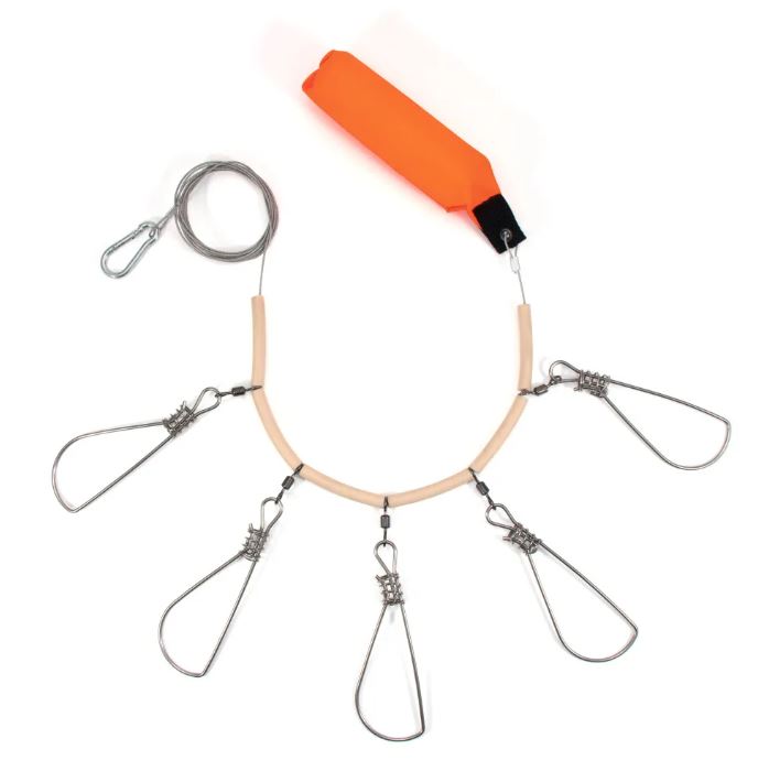 Кукан Namazu металл. трос 2,5 м, d-1,5 мм, 5 карабинов на пруж., с поплавком (уп. PVC чехол)