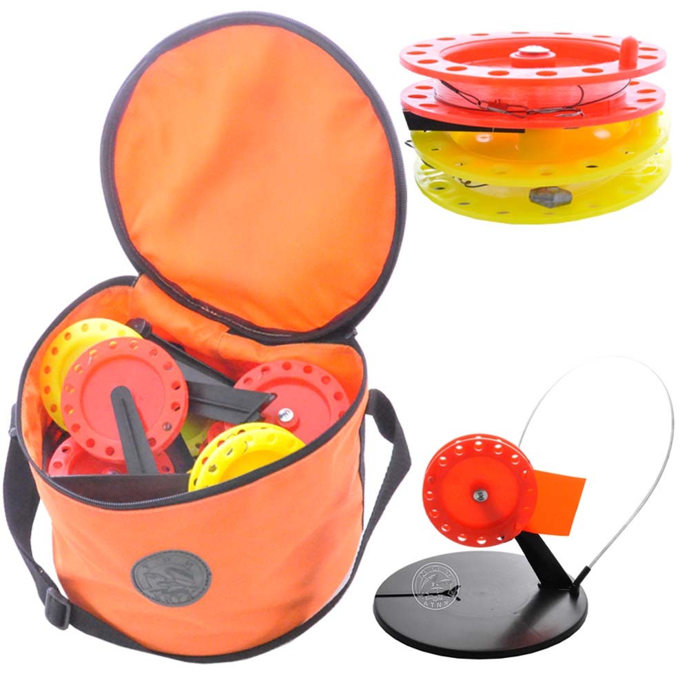 Набор жерлиц оснащенных Три Кита с угл. стойкой в сумке с кат. цв.ассорти d.85 (уп.10шт)
