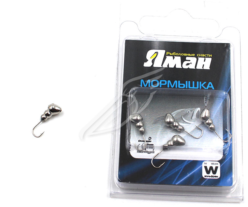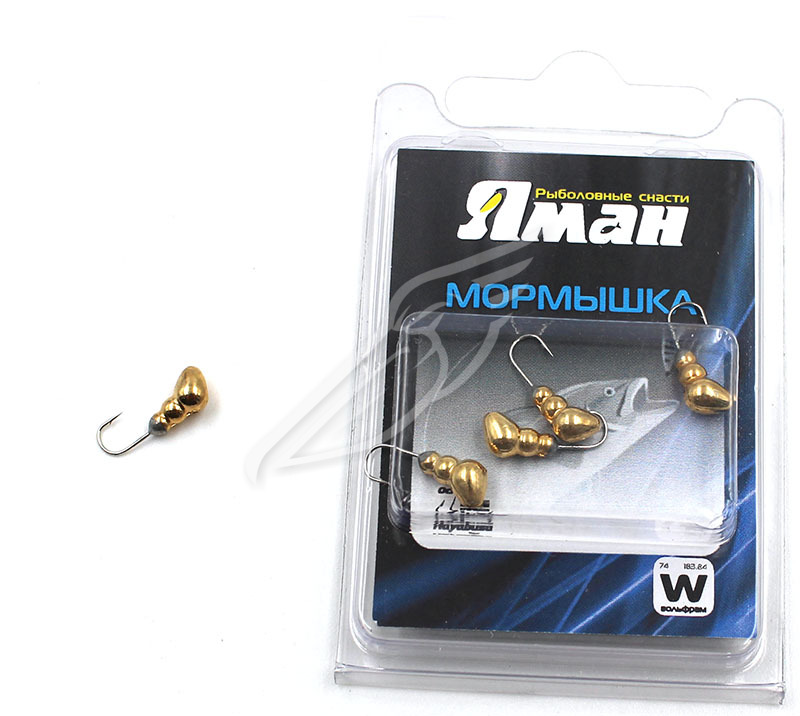 Мормышка вольфрам. безнасадочная ЯМАН Ручейник №6, d-2,5мм, L-8.5мм, вес 0,80гр., фц.желт. кубик сал
