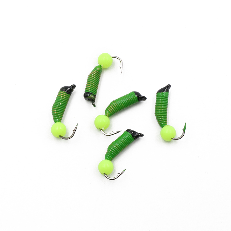 Мормышка вольфрам. безнасадочная ЯМАН Ручейник №6, d-2,5мм, L-8.5мм, вес 0,80гр., рыбий глаз, салат.