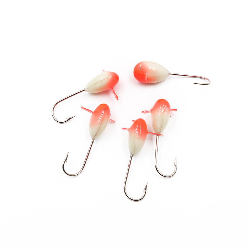 Мормышка полимер. ЯМАН Капля крас. шап. с отверстием, кр. №8, цв. фосфор-красн.