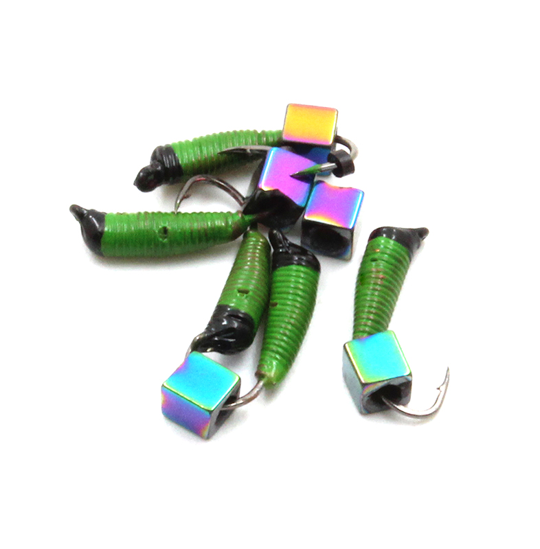 Мормышка вольфрам. безнасадочная ЯМАН Ручейник №5, d-2мм, L-9.5мм, вес 0,80гр., кубик, цв. салат.