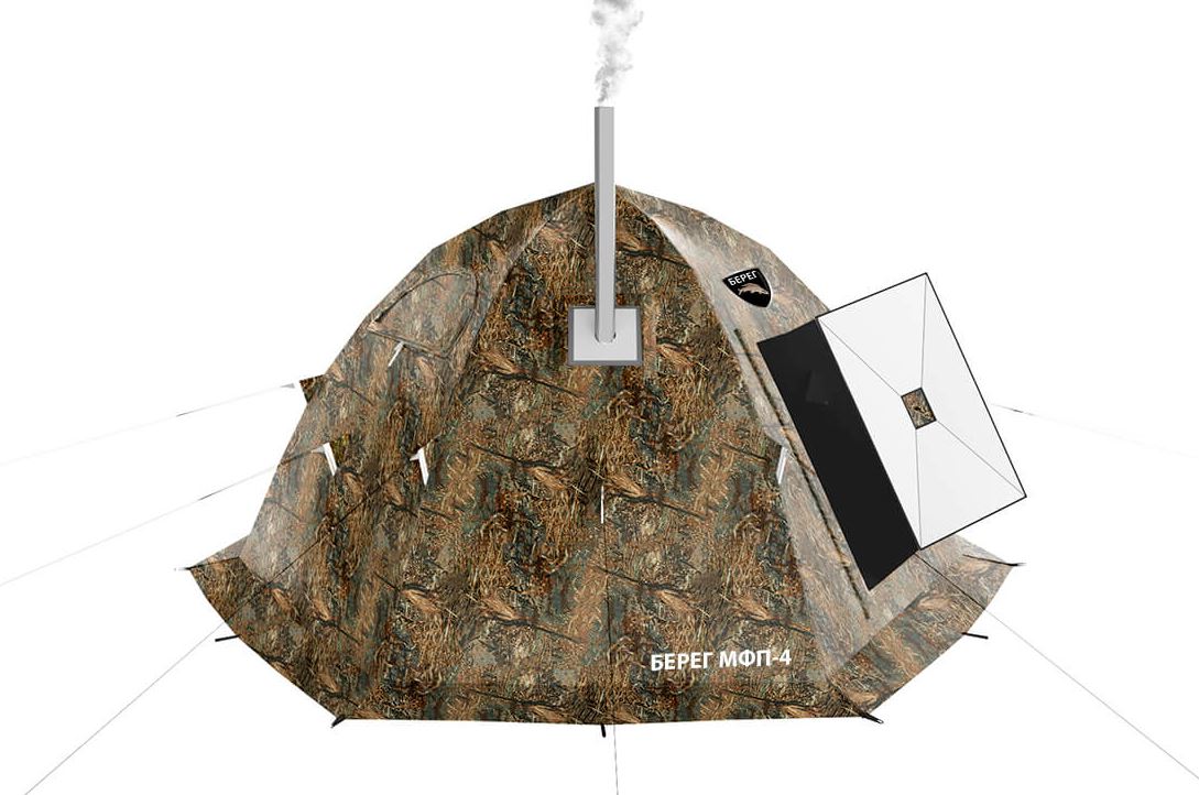 Всесезонная палатка Берег МФП-4 Берег – двухслойная зонтичная, полуавтоматическая палатка с возможностью быстрой сборки и системой тросового раскрытия.