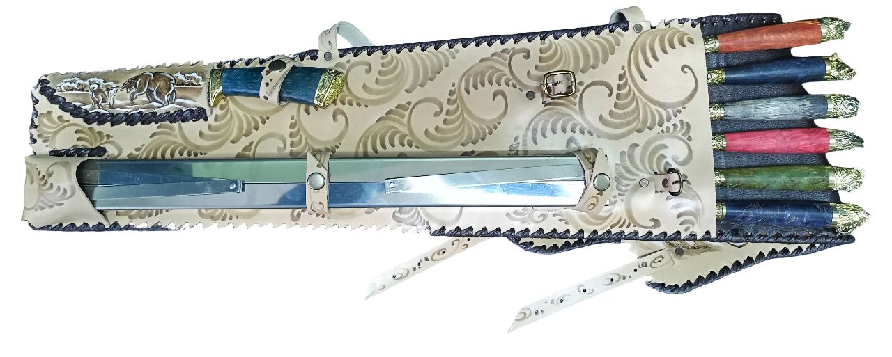 Набор подарочный шашлычный НШ-4 (Нож, таганок, шампур стабилка "Звери" 6шт) белый, краски