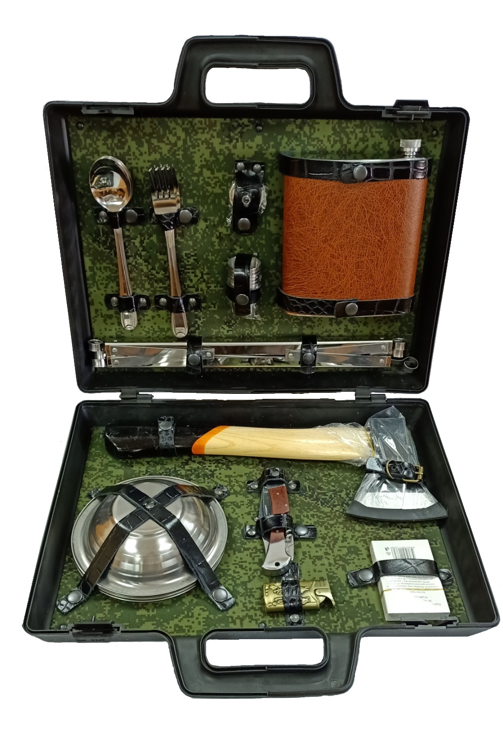 Фляжка подарочная 502 ,0,5 л.+нож+2 стаканчика (Серебро)