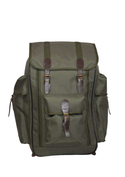 Ранец объемом 45 л. Тревожный. Застегивается спереди на две длинные молнии, при расстегивании которых передняя стенка откидывается как клапан, обеспечивая быстрый доступ внутрь ранца. Легкая прочная формоустойчивая конструкция ранца обеспечивается изолоновыми вставками и позволяет с легкостью переносить значительные грузы. На передней стенке и по бокам ранца имеются объемные карманы. Лямки широкие, плотные, умеренно мягкие, регулируются при помощи кожаных ремней.