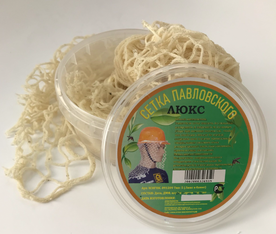 Сетка Павловского накидывается поверх одежды на головной убор, испаряясь активное вещество отпугивает кровососущих насекомых.